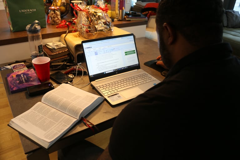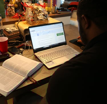 Reeder studies and prepares to speak at church. (Photographed by Dani Fielder.)